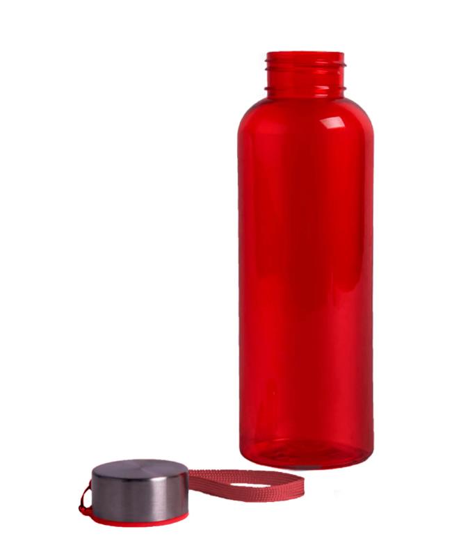 Пластиковая цветная бутылка с металлической крышкой.
